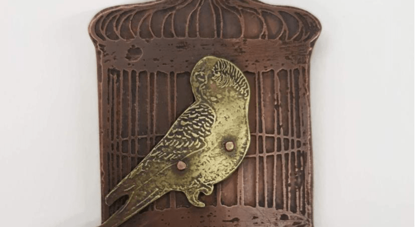Artwork: Bird on a Cage, Jordan Matthews Copper and bronze, 5 x 3 in., 2020